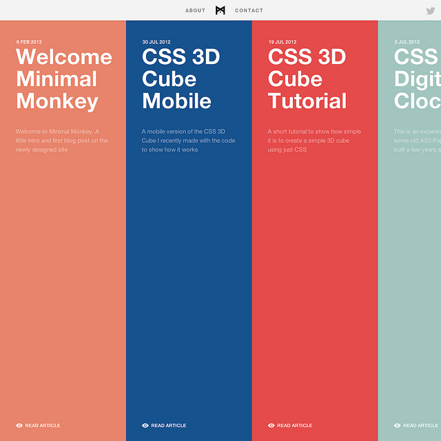 Fiのインタラクティブ・デベロッパー、Stephen Burgessさんの個人ブログサイト。異なるサイズのディスプレイにおける表示を考慮した解像度レスポンシブなサイトであり、且つどのデバイスに於いてもサイトの基本的な閲覧方法が変わらないというインターフェースレスポンシブなサイトでもある点がユニーク。タブレット・ファーストに考案されたデザインと思われる。デザインは同じFi所属であるTobias van Schniederさんの手によるもの。